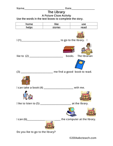 Worksheet Picture Cloze The Library Elementary Teaching