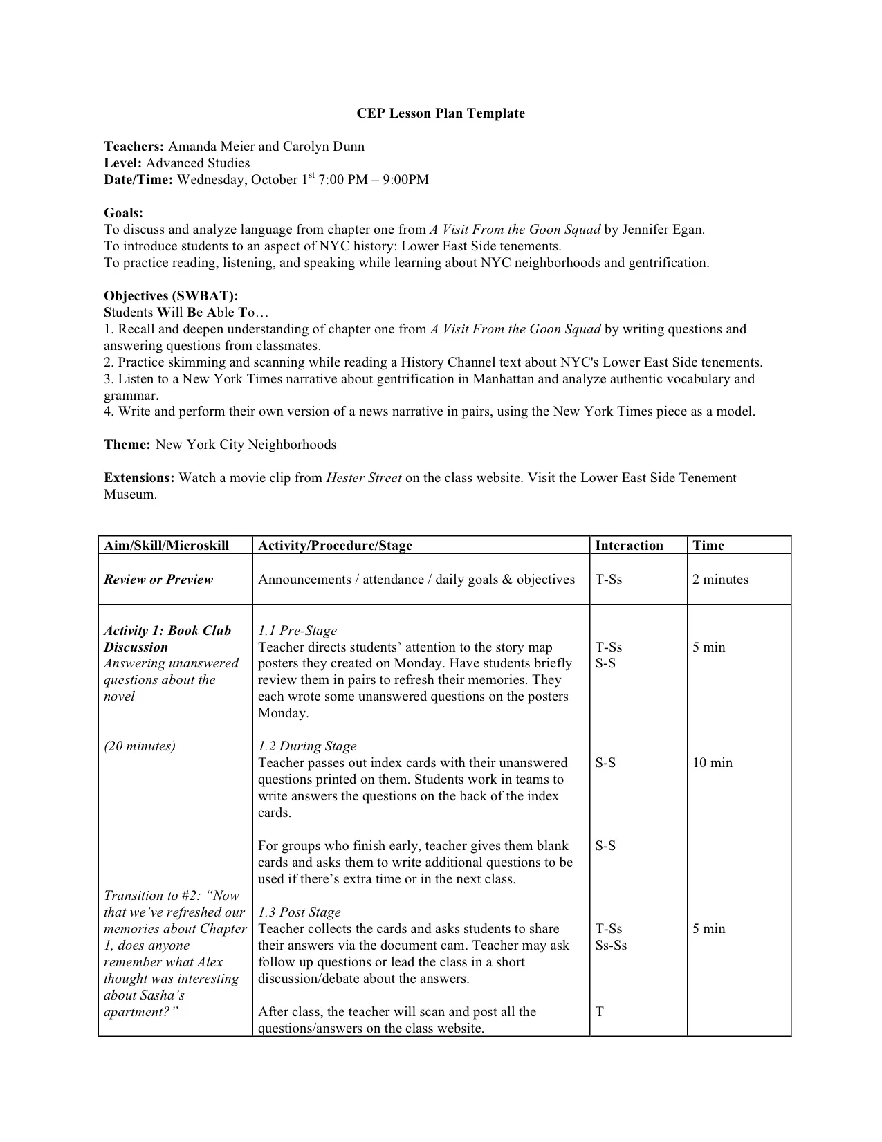 Sample Lesson Plans Advanced Studies Amanda Meier